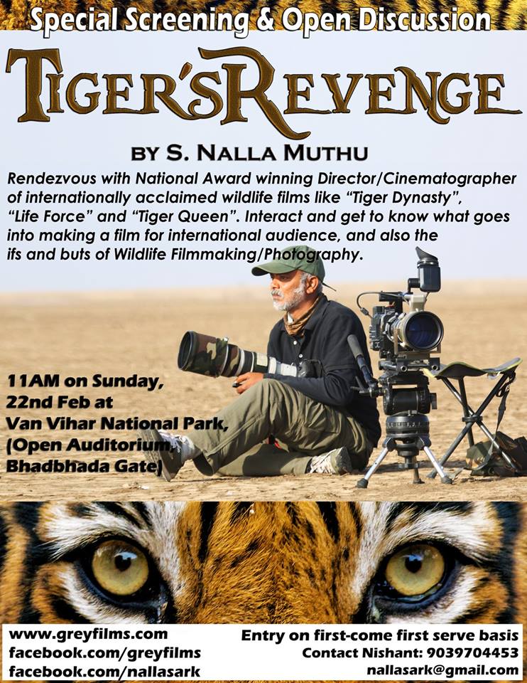 It will also be an occasion for those who want to make a career in Wildlife Filmmaking and/Photography to watch the film Tiger’s Revenge.