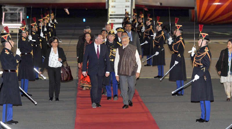 Prime Minister Narendra Modi being welcomed on his arrival at Paris Orly International Airport, in France on April 09, 2015.