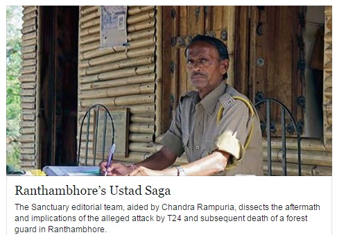 Sanctuary Asia has published a complete and objective story of Ustad without taking sides. Sanctuary underscores “the attack and killing of a forest guard in Ranthambhore, Rajasthan, by a tiger identified as T24, and the cat’s subsequent incarceration has created a national uproar on social media.”