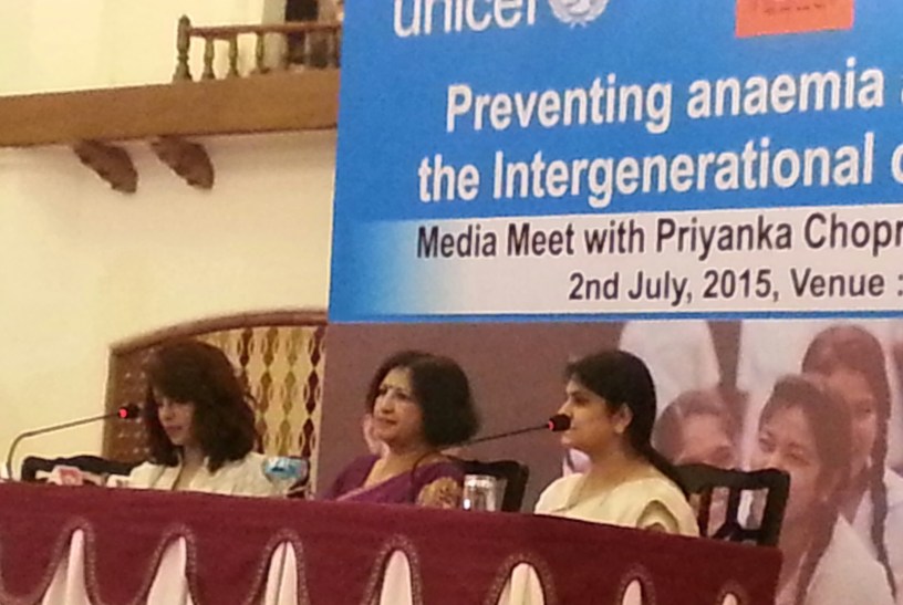 Bhopal: Priyanka Chopra, UNICEF Goodwill Ambassador today engaged with a group of adolescents here and discussed important issues affecting their lives, including nutritiin and particularly ways to prevent anaemia.