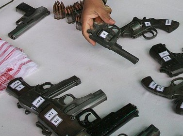 According to a police officer, who was part of the raiding team, two persons Babu Ram and Avdesh were nabbed from the spot while a few others involved in the illegalarms manufacturing activity managed to escape.