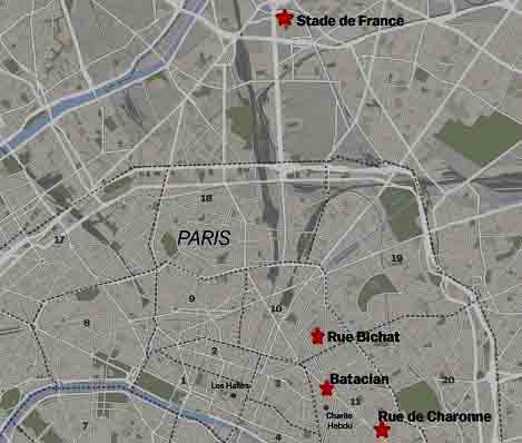 - Bataclan concert venue, 50 boulevard Voltaire, 11th district