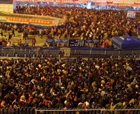 Monday witnessed a huge gathering of passengers who waited in thousands of head count, all delayed by cancellation of many trains from north and central China due to snow. Tuesday added to the swell in numbers as people wanting to travel back to their home and transitory migrants closed in at the trains stations, adding to the already-stranded crowd. The number of people wanting to travel on the runup to Chinese New Year rose to almost 100,000.