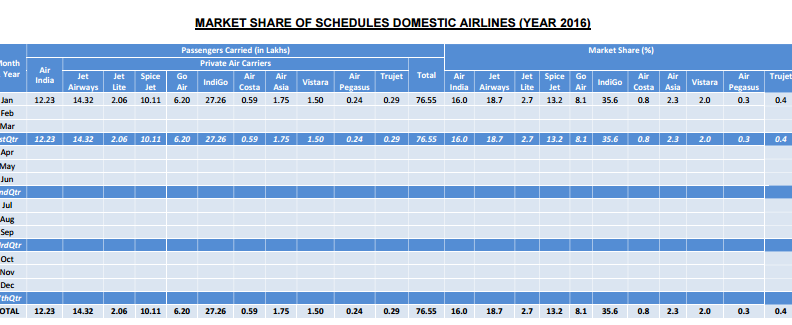 The airline-wise details are as follows: