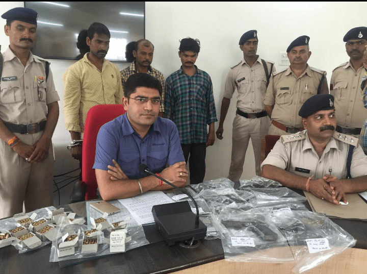 Bhind (Madhya Pradesh): The Bhind district police today busted an arms smuggling racket by arresting three persons and seizing from their possession 7 pistols, a 315 bore country-made firearm and 300 rounds of cartridges at Gohad crossing.