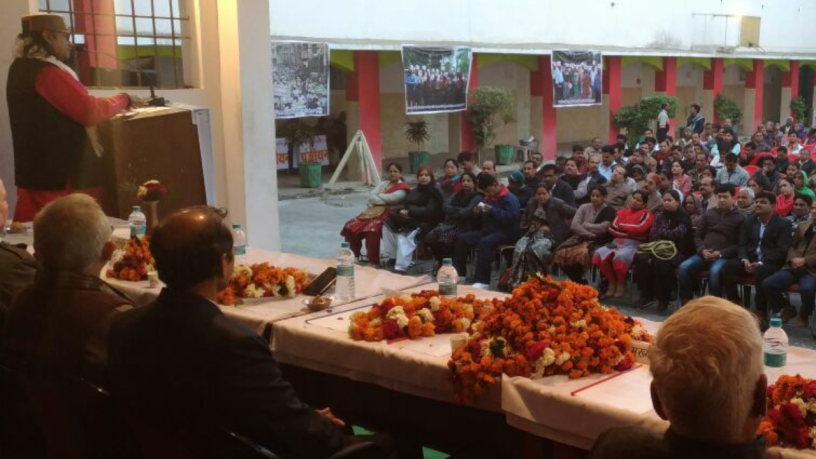 Param Pujya Sant Kripal Singhji Maharaj, who heads Gwalior’s Adhyatm Niketan and is also the chairman of Rajput Hitkarni Sabha, was the chief guest at the Gwalior convention of SAPAKS on the theme “Reservation Promotion”. He began by stating ” योग: कर्मस्य कौशलं – जिसने कर्म मे कौशल हासिल किया है, अध्यात्म की दृष्टि से, वही योग्य है “. All were spellbound when he took the audience on a path of reasoning and drove home the point that attaining skill in action or at work makes one suitable and endowed with capacity and wisdom by citing from the Bhagvat Gita.