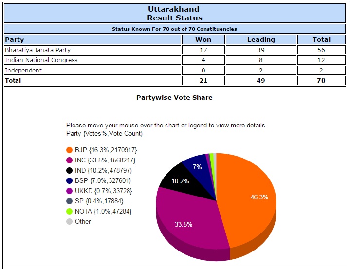 The narrative has not been uniform across all the five states that went to polls. Of course the BJP has won a majority in Uttarakhand, where earlier attempts by the Modi Government to impose President’s Rule had failed as the ousted state chief minister Harish Rawat was reinstated with the intervention of the the Supreme Court last year.