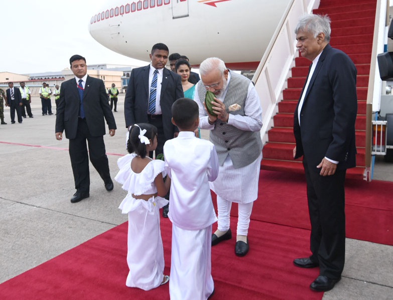 Colombo: Prime Minister Narendra Modi, arrived in Colombo Thursday evening on atwo day visit. He was received at the airport by Sri Lankan Prime Minister Ranil Wickramsinghe, and other senior Ministers.