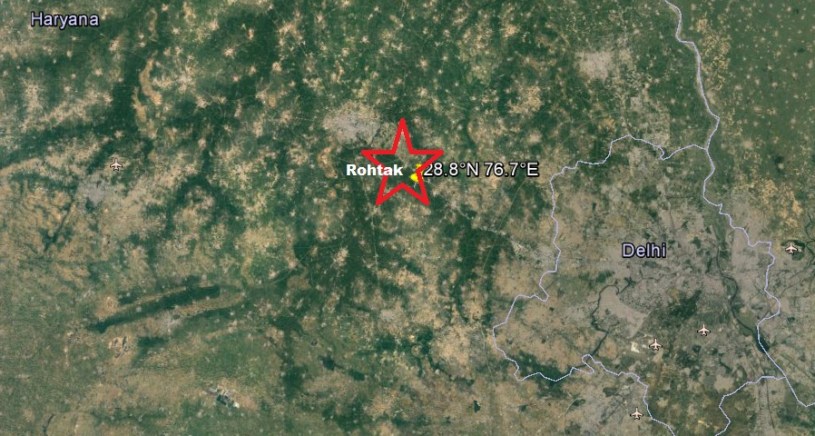 New Delhi: Tremors were felt twice in National Capital Region of Delhi and large parts of North India following a quake of 5 and then 3.2 magnitude this morning with eipcentre, at a depth of 10 kms, near Rohtak in Haryana, 58 kms from central Delhi (Lat.28.8°N Long.76.7°E).