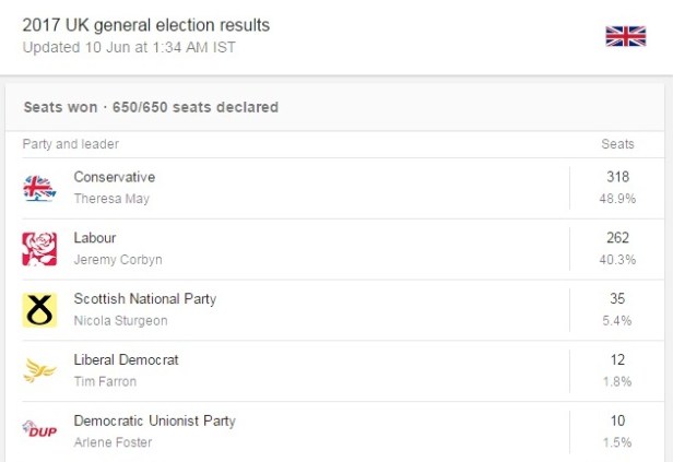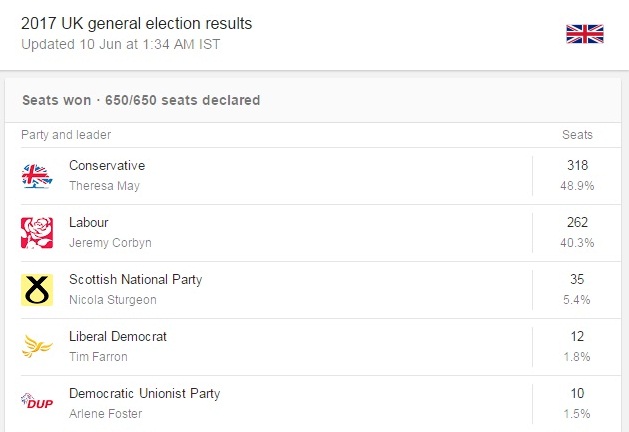 The UK General Election has delivered a hung parliament with neither the Conservative nor the Labour party getting a clear majority. For a clear majority 326 seats were needed but the Conservative party, which has emerged as the largest party, has secured 318 seats against 262 of the Labour party.