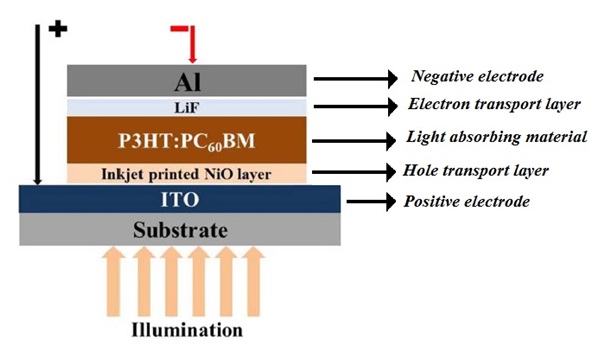 The next part of this study was to test the performance of this inkjet-printed NiO film in an organic solar cell device. In such a device, the hole transporting layer must bond well with the light absorbing material to provide a smooth passage for the positively charged ‘holes’ of the material to reach an electrode. For this, they chemically and thermally treated the NiO film, and were able to drastically improve the conversion efficiency of the device from 0.75% to 2.67%.