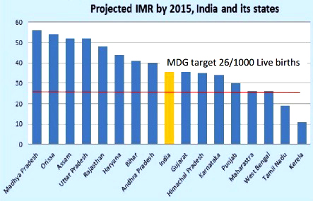 According to 2015 figures Madhya Pradesh was the worst state in the country with maximum infant mortality (50 per 1000 against an all india average of 37).