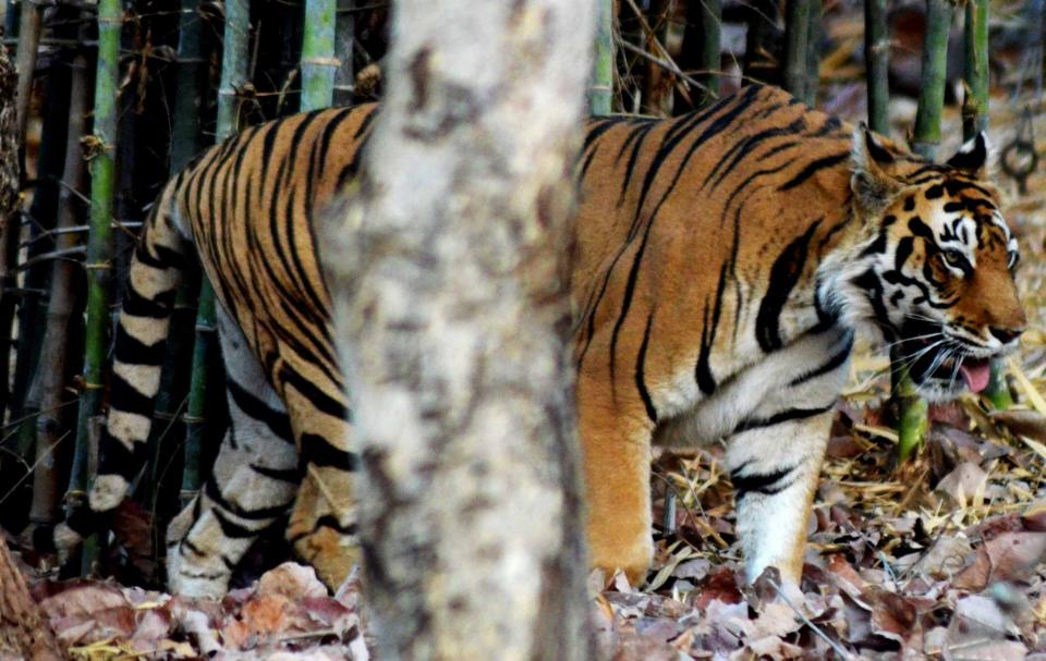 In 1964, leopard was exterminated from the area, but has recently been observed through camera-trap technique by the forest department. Tigers have been reported twice from the area with first sighting in 1999 when a tigress ventured into the park but was later found dead. In 2010, a tiger came from Ranthambore National Park and stayed in the park for the four months until it was relocated to Sariska tiger reserve.