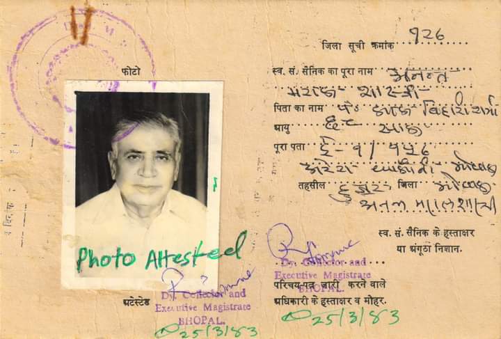 Pandit Lal Bihari Sharma had a huge landed property in Ambikapur, Sarguja, which his son Anant Maral, who was the only son and heir to that property, just left it when he joined Kashi Vidyapeeth and the Freedom Movement at a young age. He never returned to claim it after Independence.