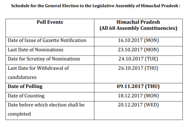 The Election Commission The term of the Legislative Assembly of Himachal Pradesh is due to expire on 7 January 2018.