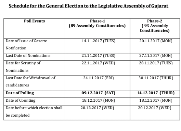 New Delhi: The Election Commission of India today announced the schedule for Gujarat Assembly elections. The polling for these elections will be held in two phases. The first phase of polling will be on 9 December and second phase of polling will be on 14 December.