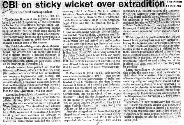 I wrote this for The Hindu in 1996 to expose the bungling by Government of India and CBI when it came to seeking the extradition of former Union Carbide Chairman Warren Anderson -Lalit Shastri