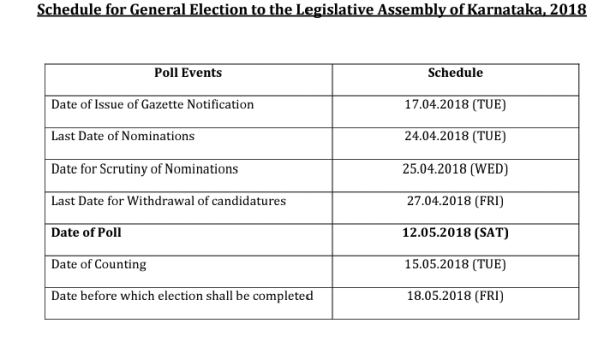 New Delhi: The Election Commission of India today announced the Schedule for General Election to the Legislative Assembly of Karnataka, 2018.