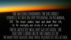 We quote: “It’s a huge setback legislating a collective national response. Our response options have shrunk to abysmal depths…so I tend to believe. Why…who is to blame…many including my ilk. There is no fear in the adversary. Deep introspection is required. Not enough to blame Pakistan…how about apportioning blame to those who have made us incapable of a response…. Surgical strikes outlived their utility in 24 hours…but to date we like to flag it…why? We need to get over political rhetoric; instead focus on deterrence options at the strategic/national level…not tactical knee-jerk reactions. Sad day, if we have to scramble for response options, would be proud if they are in place and would be put to effect.”