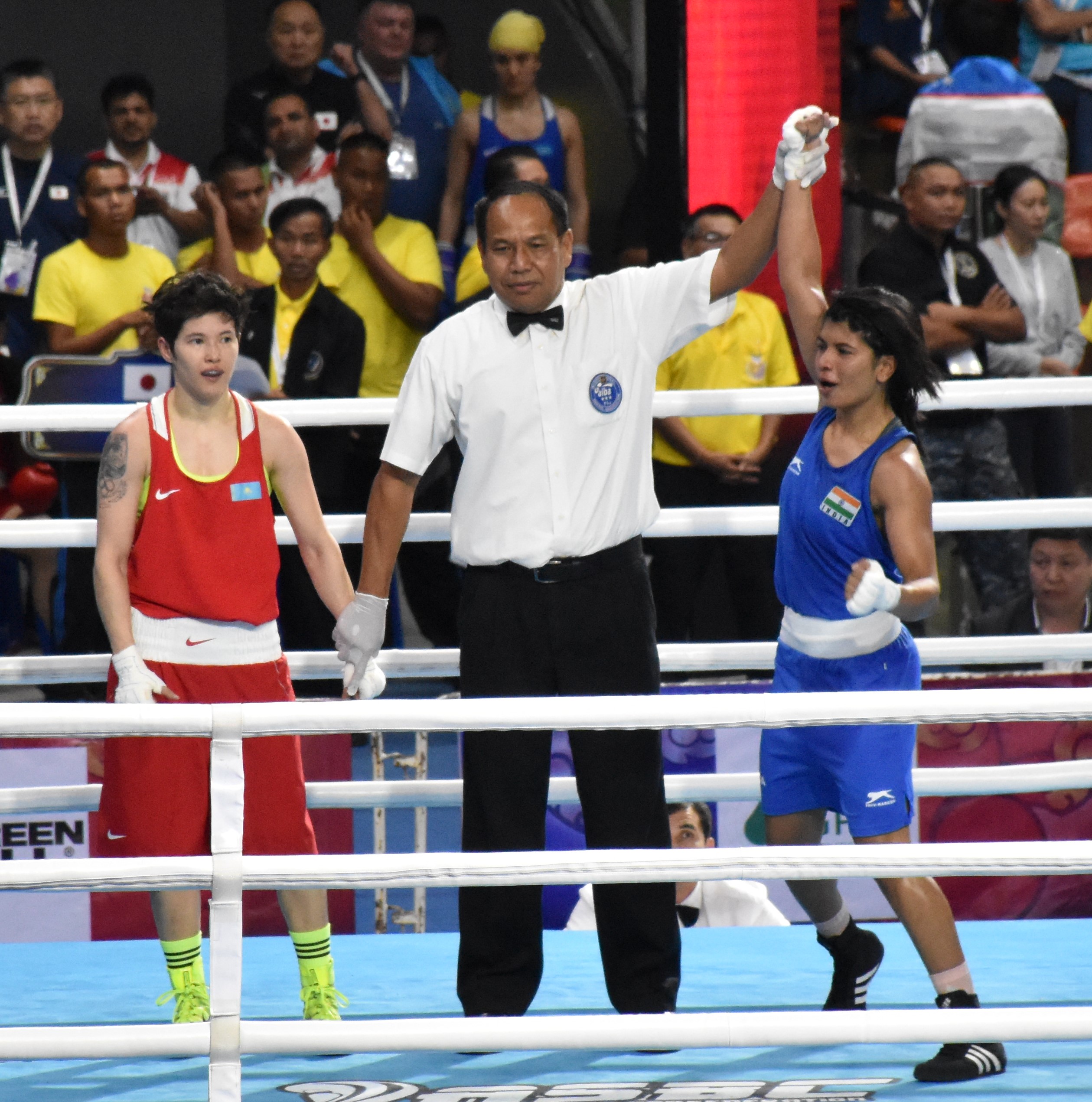 37-year old Sarita Devi defied the age as she outpunched Kazakhstan’s Rimma Volossenko 3-2 to march into the last-four.