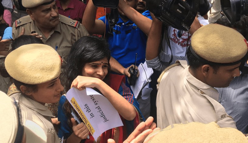 New Delhi: Fifty-five protesters, mostly women lawyers and activists, who were protesting outside the Supreme Court against the clean chit given to Chief Justice Ranjan Gogoi by an inhouse probe panel in the sexual harrasment case, were detained by the police on Tuesday, 7 May 2019.