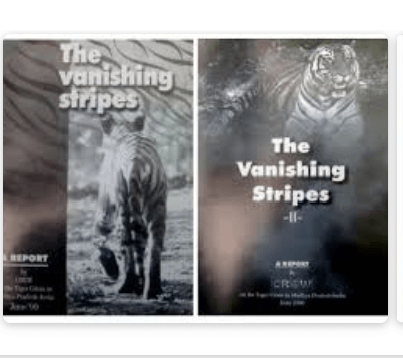 Bhopal: Mark the third image in the photo – screenshot of Google’s top ranking page on searching the 3- key words “vanishing stripes crew’. This is how the title of the path breaking reports published in 1999 and 2000 by CREW (Crusade for Revival of Environment and Wildlife, a not-for-profit organisation registered under the MP Societies Act in 1997), on the status of tigers and their habitat, which is the indicator of the condition of the ecosystem, has been plagiarised with impunity.