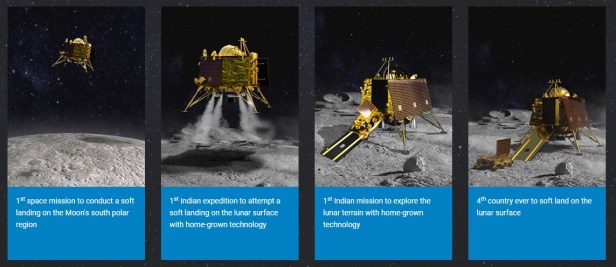 Chandrayaan-2, according to ISRO, is designed to soft land the lander -Vikram and rover- Pragyan in a high plain between two craters, Manzinus C and Simpelius N, at a latitude of about 70° south. Evidence for water molecules discovered by Chandrayaan-1, requires further studies on the extent of water molecule distribution on the surface, below the surface and in the tenuous lunar exosphere to address the origin of water on Moon. Moreoever, extensive mapping of lunar surface to study variations in lunar surface composition is essential to trace back the origin and evolution of the Moon. Significantly, Moon provides the best linkage to Earth’s early history. It offers an undisturbed historical record of the inner Solar system environment. Though there are a few mature models, the origin of Moon still needs further explanations. The lunar South Pole is especially interesting because of the lunar surface area here that remains in shadow is much larger than that at the North Pole. There is a possibility of the presence of water in permanently shadowed areas around it. In addition, South Pole region has craters that are cold traps and contain a fossil record of the early Solar System.