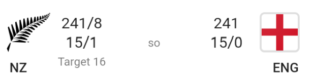 England batting second was chasing a target of 242 for victory but they ended up tied at 241 due to a dramatic runout on the last ball.