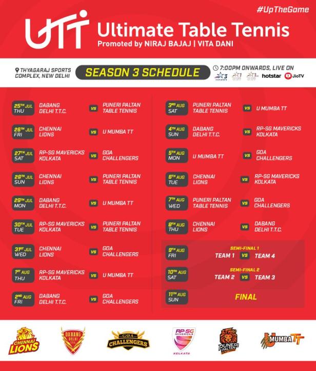The six-team city-based affair will see a total of 36 players in action, including 11 Olympians, 2 Youth Olympians and a total of 25 national champions across all the senior categories, fighting it out for the coveted UTT trophy.