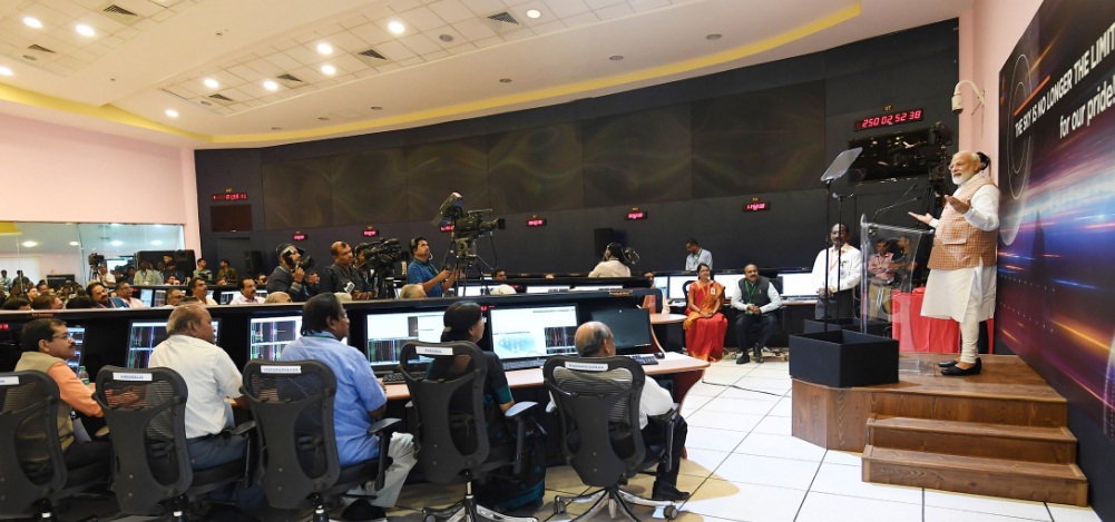 Bangaluru: Hours after ISRO Chairman Dr K Sivan had announced from the Control Centre at the ISRO headquarters in Bangalore at 2.18 am Saturday that they have lost signals from Chandrayaan- 2 Lander Vikram when it was at an altitude of 2.1 km, Prime Minister Narendra Modi who was present to witness the Moon landing of Chandrayan-2 Lander at the ISRO HQ during the midnight hours said “India is proud of our scientists! They’ve given their best and have always made India proud. These are moments to be courageous, and courageous we will be!”