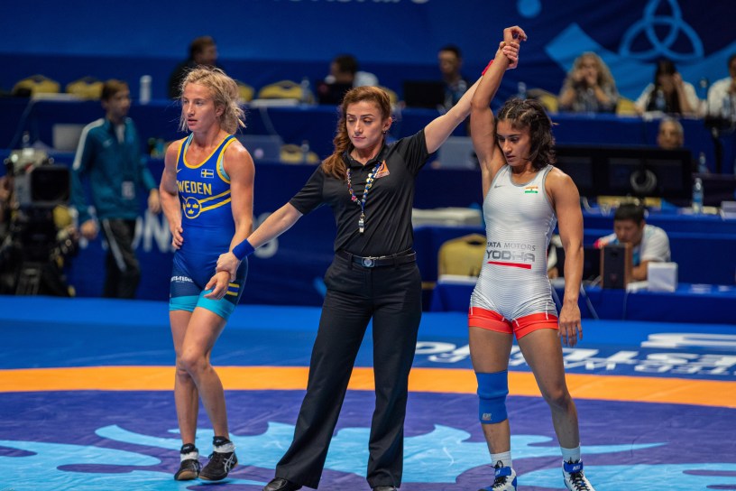 New Delhi: Vinesh Phogat (53kg) and Seema Bisla (50kg) were precariously placed in their bid for a bronze medal each as they reached the repechage round in their respective categories at the UWW World Senior Wrestling Championships in Nur-Sultan, Kazakhstan on Tuesday.