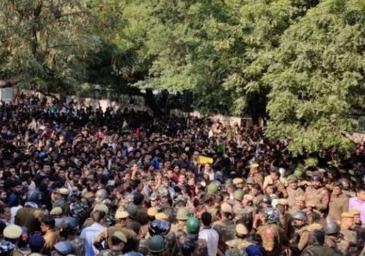 There was heavy deployment of police at the JNU campus on Monday. The police detained many students and also used force to stop them when they were marching towards Parliament on the first day of the winter session. The students are demanding total rollback of the hostel fee hike.
