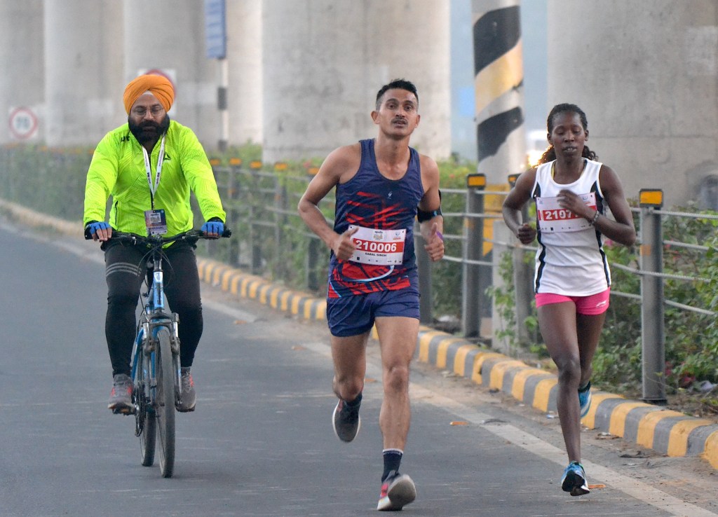 Sally Kurui, who like Ronald Kemboi, signed up for the event only on Saturday, broke the event’s half marathon record with a time of 1:21:35. It was a good 10 minutes faster than the existing mark of 1:31:25 set by Kiranjit Kaur in the opening year. Kiranjit Kaur rode on the pace set by the Kenyan and finished four minutes behind her in a fast race.