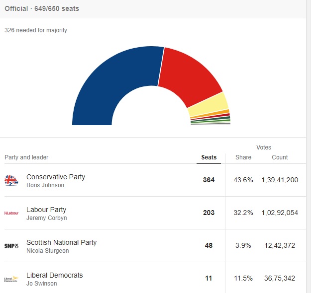 London: Friday the 13th has brought defeat to the Jeremy Corbyn led main opposition Labour party in the UK election that has returned Prime Minister Boris Johnson’s Conservative Party to power with a thumping majority.