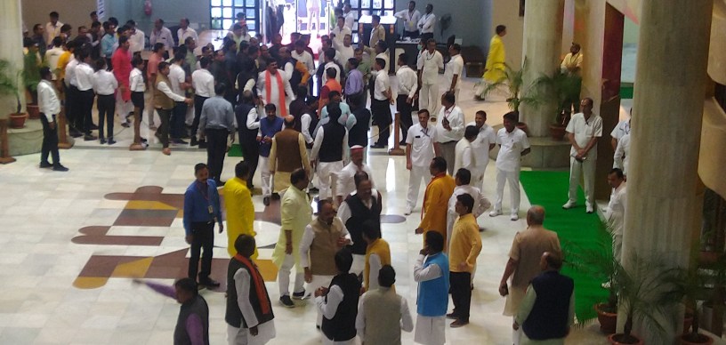 At about 3 pm, the BJP legislator party began it’s meeting at the State BJP headquarters here to election the leader.