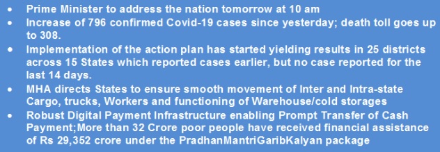An increase of 796 cases has been reported since yesterday, with a total of 9152 confirmed cases of COVID-19 in the country. As many as 857 persons have been cured/discharged after recovery and total 308 deaths have been reported, as of today.