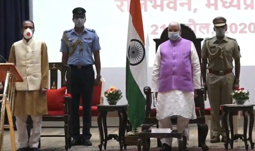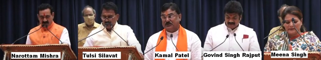 Bhopal: Madhya Pradesh Governor Lalji Tandon on Tuesday, 21 April 2020, administered the oath of office and secrecy to five Cabinet Ministers – Narottam Mishra, Tulsiram Silawat, Govind Singh Rajput, Meena Singh and Kamal Patel.