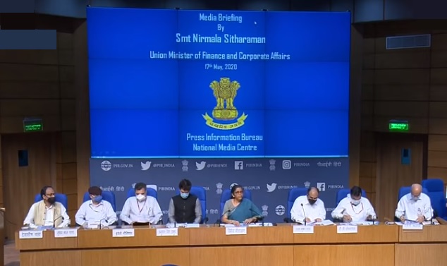 In her opening remarks during the 5th Press Conference here on Sunday 17 May 2020, on stimulus package to fight COVID-19 under Aatma Nirbhar Bharat Abhiyaan, Union Minister of Finance & Corporate Affairs Nirmala Sitharaman referred to the vision laid out by Prime Minister Narendra Modi in his address to the Nation on 12 May 2020. Quoting the Prime Minister, Sitharaman said that as a Nation, we stand at a very crucial juncture. COVID-19 Pandemic has brought a message and an opportunity. We need now to build an Aatma Nirbhar Bharat.