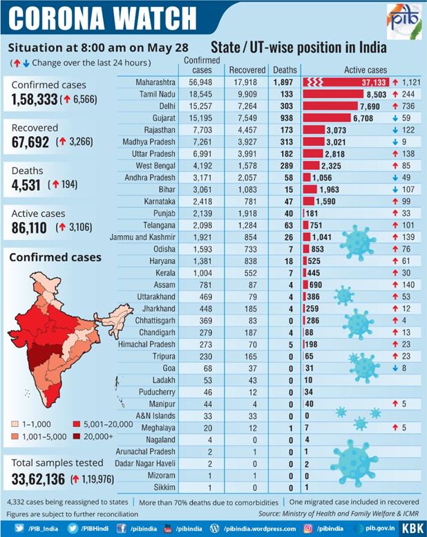 The number of cases under active medical supervision was 86,110 on Thursday evening. So far, a total of 67,691 people has been cured. In the last 24 hours, 3,266 patients were found cured. This takes our total recovery rate to 42.75%.