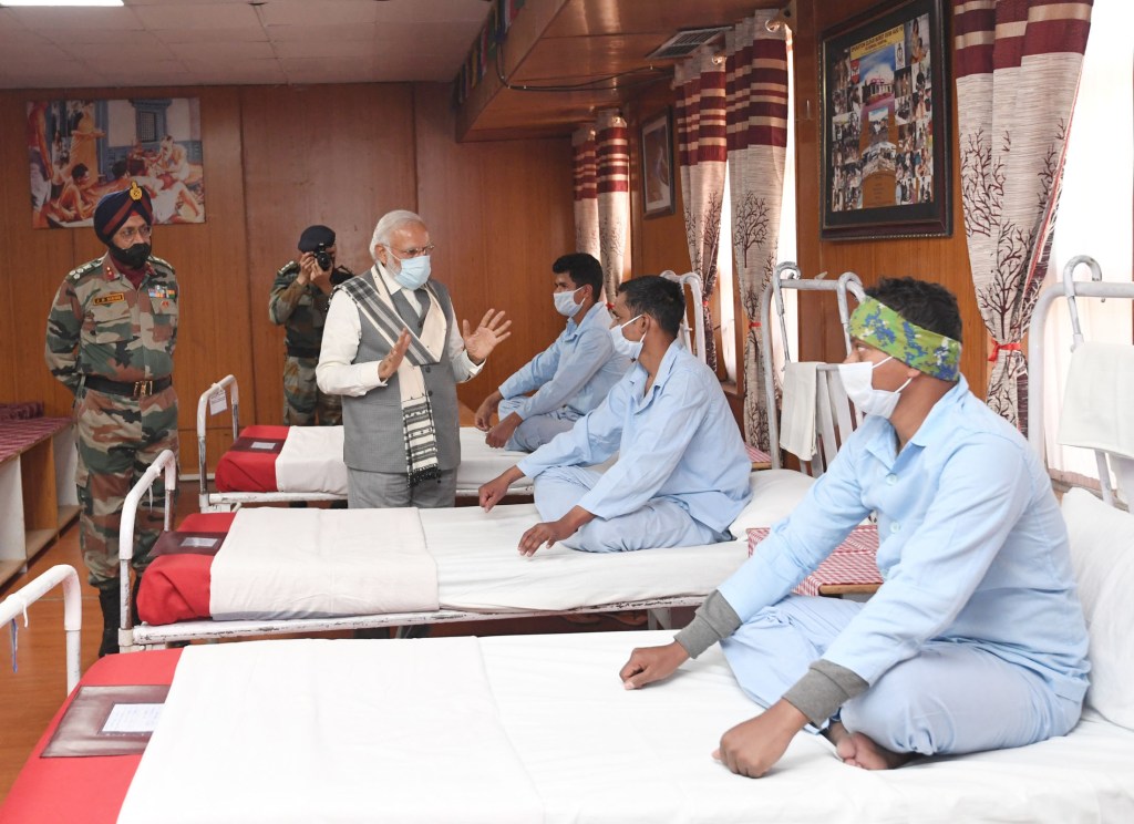 Leh (Ladakh): Prime Minister Narendra Modi travelled to Nimu in Ladakh to interact with Indian troops earlier on Friday 3 July 2020. Nimu is surrounded by the Zanskar range and is on the banks of river Indus. The Prime Minister met the top leadership of the Indian Army and later interacted with personnel of the Army, Air Force and ITBP.