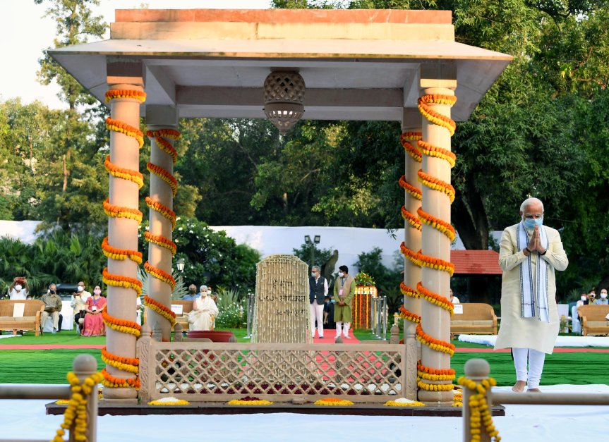 New Delhi: Prime Minister Narendra Modi attended a prayer meet and paid his respects at Gandhi Smriti on the occasion of 150th Birth Centenary of Mahatma Gandhi ,in New Delhi on Friday October 2, 2020.