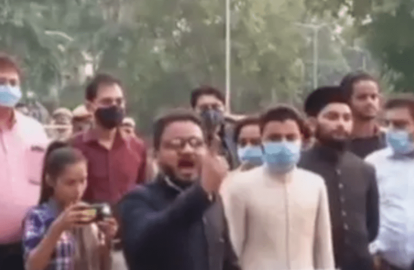 The AMU student leader, surrounded by a crowd of like-minded students spoke against the French President while condemning a French cartoon of Prophet Muhammad. He can be heard in the video openly threatening to behead anyone who shows disrespect to Prophet Mohammad.