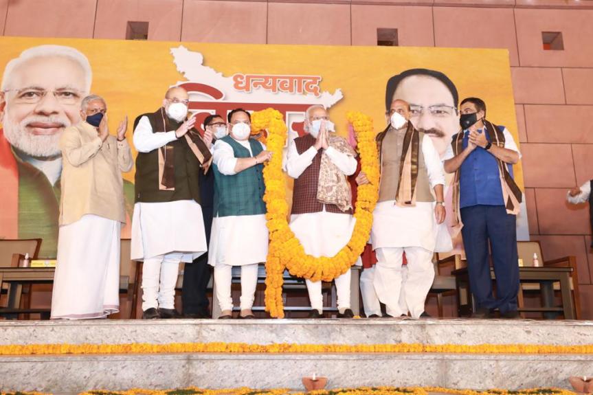 This election result is also the result of the efficient and effective strategy of Jagat Prakash Nadda, National President of Bharatiya Janata Party. Nadda ji, you go ahead, we are all with you. I heartily congratulate the National President for the impressive victory in the by-elections held in Bihar and other states of the country.