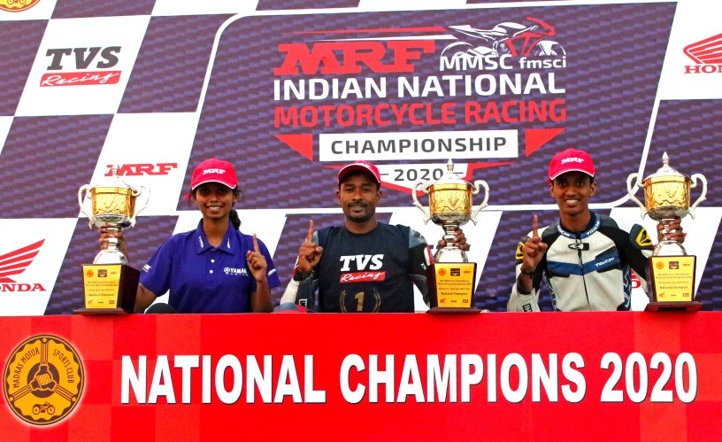 Jagan, following two consecutive wins this weekend, led team-mate KY Ahamed by four points going into Race-4 today. “I decided to take it easy and go for points instead. I am delighted to win the title after missing it last year,” said Jagan who had won the 165cc title seven times in a row (2012-18). He did just enough in the final race to finish fourth behind Mathana Kumar (Eneos Honda Erula Racing), last year’s champion Sarath Kumar (RACR Castrol Power Racing) and Ahamed. Jagan finished on 138 points to Ahamed’s 137.