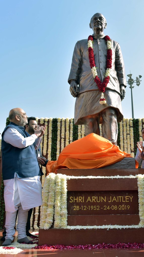New Delhi: Union home minister Amit Shah unveiled the statue of former DDCA president and Union minister Arun Jaitely at FerozShah Kotla Ground here on Monday.