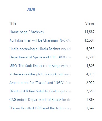 Just like the two previous years 2018 and 2019, exclusive news coverage of ISRO by Newsroom24x7 drew maximum traffic and readers’ interest even during 2020.