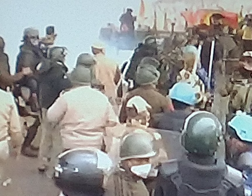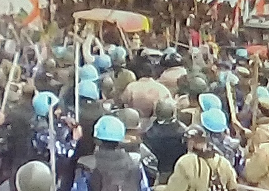 The Violent mob unfurled the saffron (Khalsa) flag at Red Fort. Police burst tear gas shells and also resorted to lathi charge at Red Fort and Singhu border to disperse the protestors, who even vandalised a public vehicles. Many police personnel were injured when mobs went berserk and began pelting stones. Eighteen of them have been admitted in LNJP hospital.