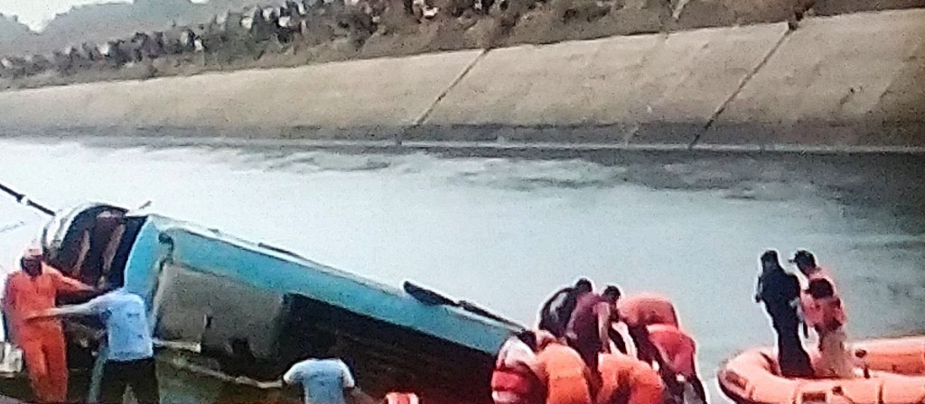 Bhopal/Sidhi: At least 37 passengers are feared dead after a bus, carrying about 50 people, fell off a bridge into Bansagar canal in Sidhi district of Madhya Pradesh on Tuesday morning, police sources said.
