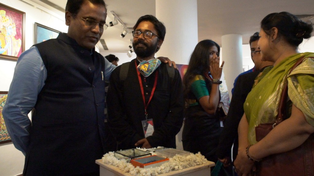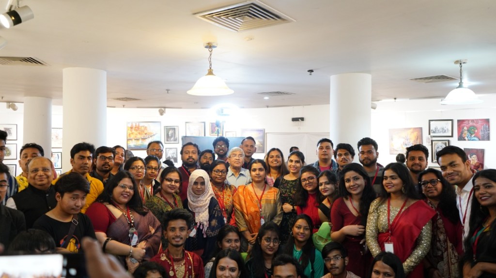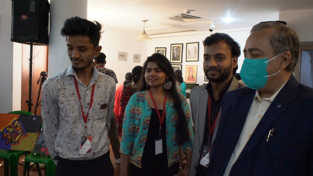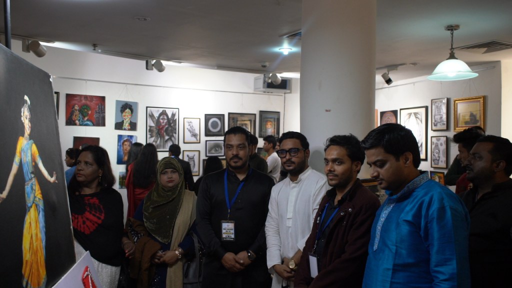 The Kolkata Exhibition got a tremendous response. A total of 60 artists from all over India participated in this exhibition. Rishabh Nigam, an M.A previous student of fine arts (Drawing and Painting), Government Hamidia Arts and Commerce College, Bhopal with 18 team members from all over India was the leading light and he spearheaded Kolkata event from the conceptualisation stage to organising it on a grand scale with the help of a brilliant team passionately dedicated to the field of art.