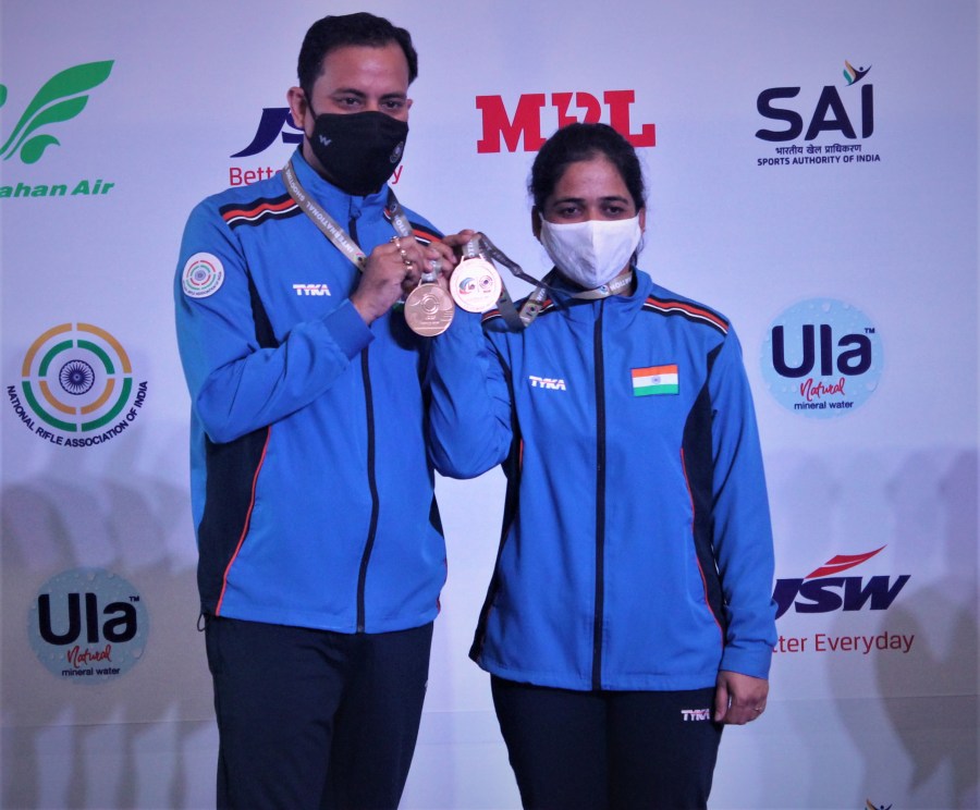 Seasoned Rifle shooters and Tokyo Olympic quota holders Tejaswini Sawant and Sanjeev Rajput clinched the day’s first gold in the 50M Rifle 3 Positions (3P) Mixed Team event. They beat the Ukranian team of Sehriy Kulish and Anna Ilina 31-29 in a closely contested final.